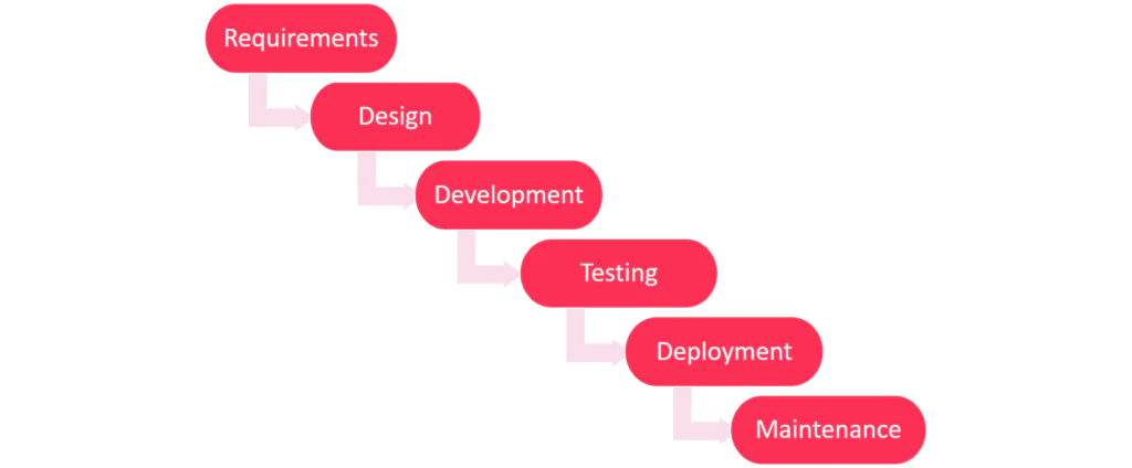 Waterfall is the classic “plan it all first, build it later” model. You define requirements, design the system, then implement, test, and deliver in strict sequence.