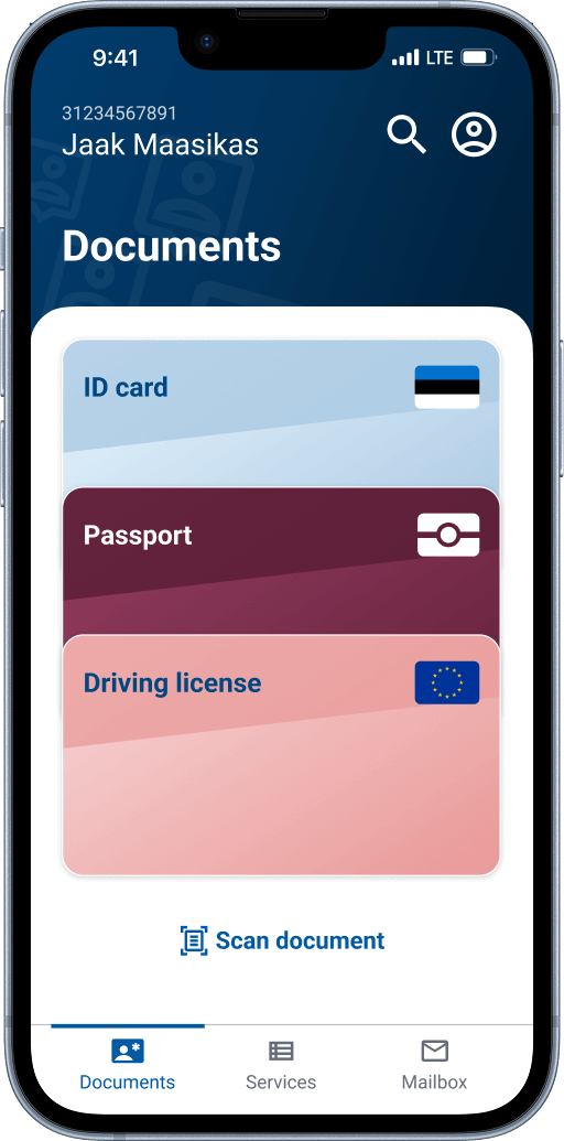 Digital documents available when and where needed: ID card, passport, Driving licence